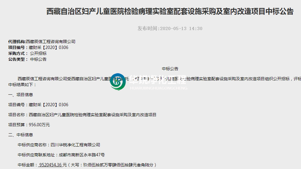 近日,華銳凈化工程有限公司中標(biāo)西藏自治區(qū)檢驗科PCR實驗室、病理科分子實驗室裝修施工項目。該項目位于西藏自治區(qū)拉薩市城區(qū),將改造(1)檢驗科包括臨檢區(qū)、生化免疫區(qū)、細胞室、HIV室、微生物室、體液室、PCR實驗室、冷庫等區(qū)域;(2)病理科分子實驗室裝修;(3)血庫裝修改造;對推進西藏自治區(qū)婦女兒童健康建設(shè)的融合升級具有非凡的意義。